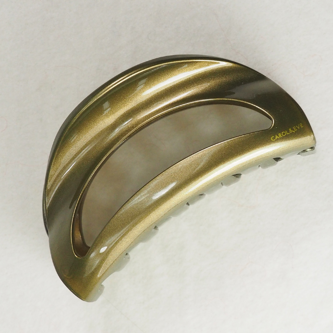 Haarspangen gibt es für alle Haarstärken in verschiedenen Größen. Für dicke und schwere Haare ist die größte Haarspange in der gebogenen Form am besten geeignet. Unter der Spange befindet sich der sogenannte Patentclip, der wegen seiner gebogenen Form höher sitzt und dadurch wesentlich mehr Haare fasst.