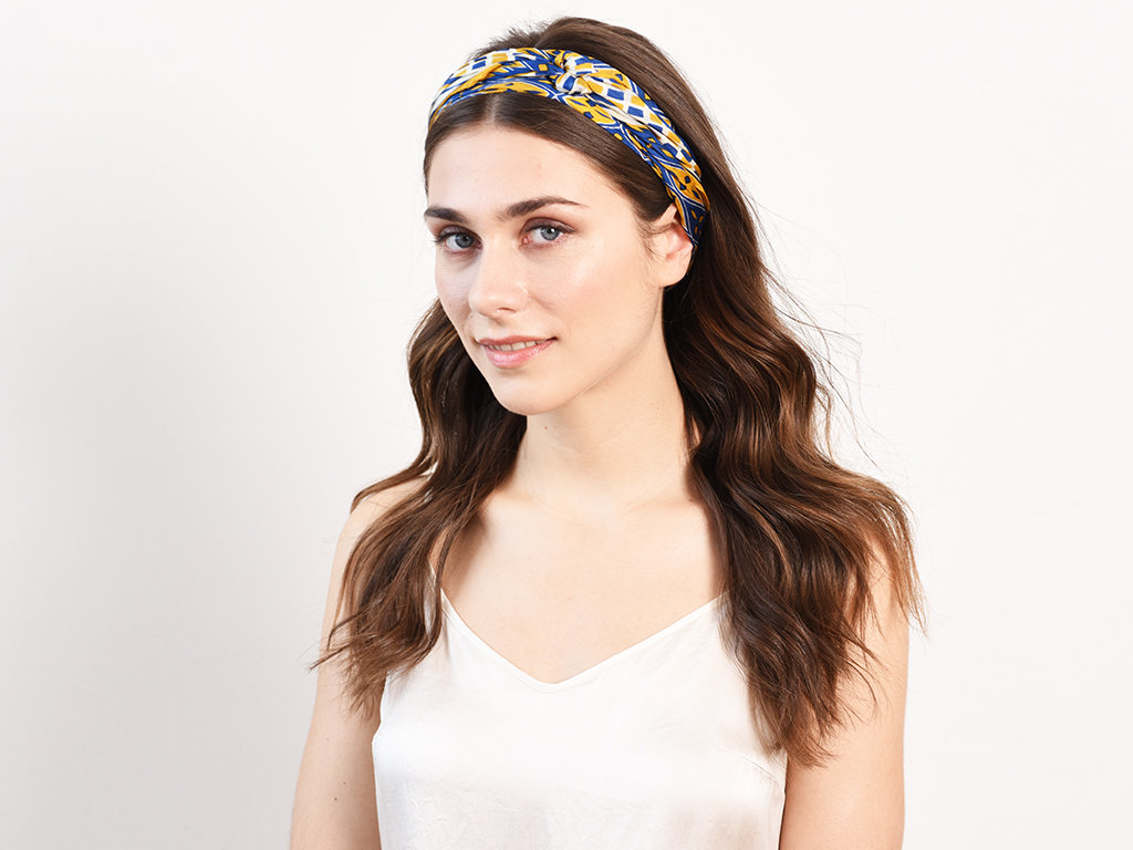 Bandanas sind der wohl schönste Haarschmuck(-Trend) des Sommers. Die bunten Tücher sind vielseitig einsetzbar und lassen sich in unterschiedlichen Varianten auf dem Kopf verknoten. Tuch Aimeé ist aus reiner Seide und misst 1x1 m. Somit lassen sich damit viele verschiedene Frisuren kreieren. Auch Models wie Gigi Hadid, Karlie Kloss oder Joan Smalls lieben den Retro-Style und zeigen sich mit immer neuen Versionen des sommerlichen Haaraccessoires.