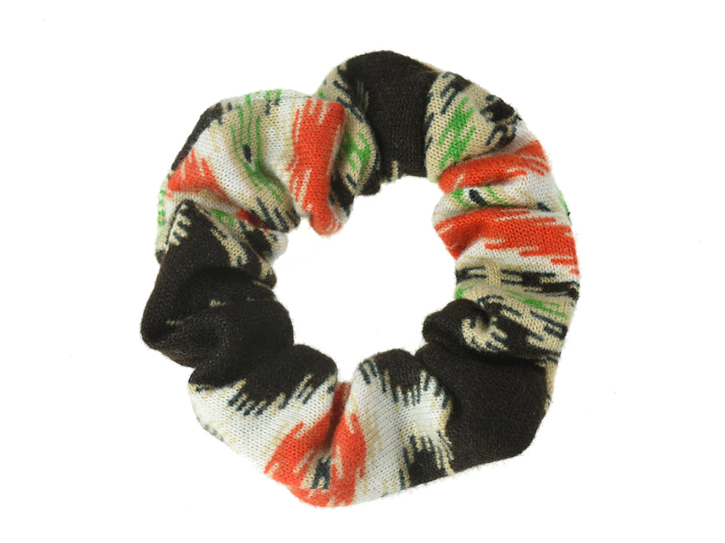 Das Besondere an diesem Scrunchie ist die Farbwelt. Das Muster ist afrikanisch inspiriert und dank der angenehmen Farbigkeit lässt es sich herrlich mit unglaublich vielen Outfits kombinieren. Der Scrunchie hat eine Stoffbreite von etwa 3 cm, einen Durchmesser von zirka 4 cm und ist aus angerauhtem Jersey gefertigt. Letzteres sorgt für eine angenehme Griffigkeit und guten Halt im Haar. Scrunchies sind ja derzeit DAS Trend-Accessoire. Kein Wunder, die mit stoffbezogenen Haargummis sind nicht nur für euer Haar super gesund, sondern verpassen jedem Outfit auch einen gewissen Coolness-Faktor.