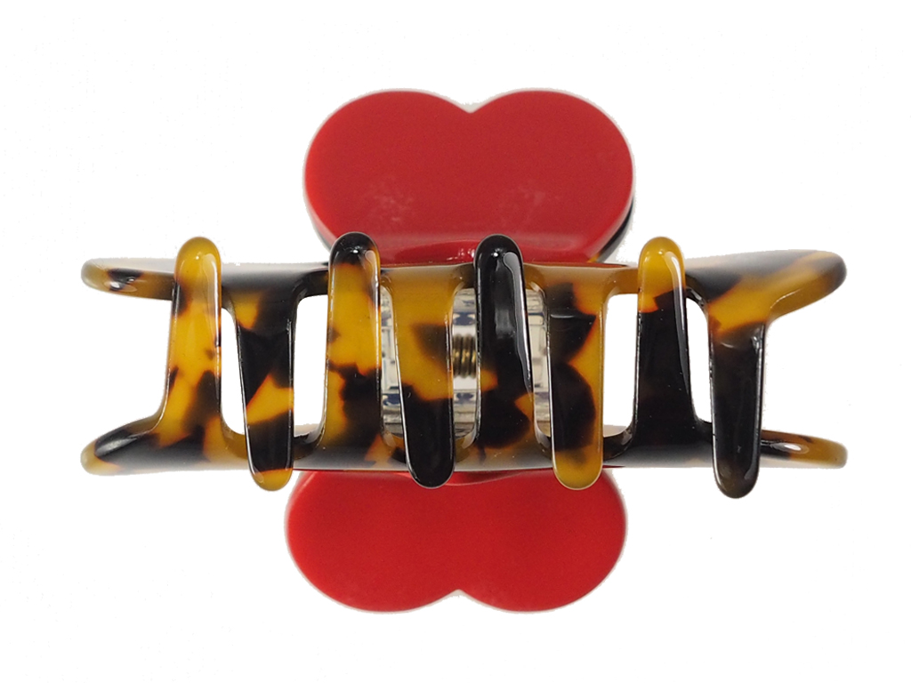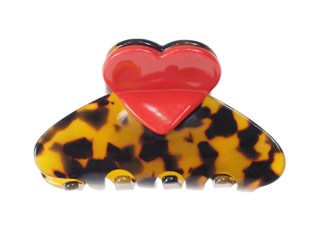 Diese charmante Haarklammer verbindet verspieltes Design mit zeitloser Eleganz. Der warme Schildpatt-Look trifft auf ein glänzendes rotes Herz, das sofort ins Auge fällt und jedem Styling eine liebevolle, feminine Note verleiht. Ob für den Alltag, ein Date oder besondere Anlässe – die etwa 7 cm lange Klammer hält dein Haar zuverlässig, ohne zu ziepen, und setzt zugleich ein stilvolles Highlight.