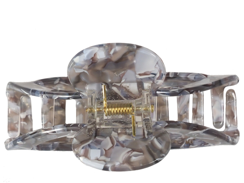 Die Haarklammer Mila kommt in total angesagter runder Form daher und wirkt dank der halbrunden Aussparungen leicht und elegant in jeder Frisur. Wir bieten sie in verschiedenen, super schönen Farbgebungen an. Diese hochwertige Haarklammer ist aus nachhaltigem Celluloseacetat gefertigt, die Feder sitzt in einem transparenten Gehäuse, sodass sich kein Haar klemmen kann. Die besondere Form- und Farbgebung macht sie zu einem edlen Haaraccessoire und echten Hingucker. Mit der etwa 8 cm langen Haarklammer könnt ihr im Handumdrehen geniale Frisuren zaubern. Egal, ob ihr euer ganzes Haar hochstecken wollt oder nur Teile davon. Die Haarklammer eignet sich bestens für langes und auch mittellanges Haar. Haarklammer Mila ist ein absolutes Must-have für alle, die Lust auf hochwertige Eleganz haben!