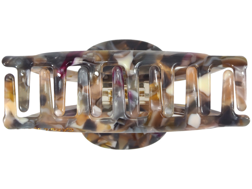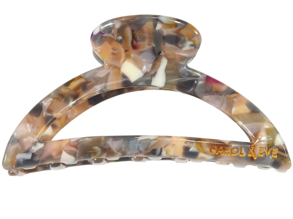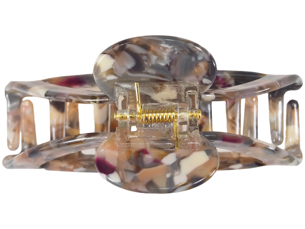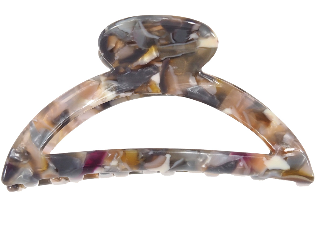 Die Haarklammer Mila kommt in total angesagter runder Form daher und wirkt dank der halbrunden Aussparungen leicht und elegant in jeder Frisur. Wir bieten sie in verschiedenen, super schönen Farbgebungen an. Diese hochwertige Haarklammer ist aus nachhaltigem Celluloseacetat gefertigt, die Feder sitzt in einem transparenten Gehäuse, sodass sich kein Haar klemmen kann. Die besondere Form- und Farbgebung macht sie zu einem edlen Haaraccessoire und echten Hingucker. Mit der etwa 8 cm langen Haarklammer könnt ihr im Handumdrehen geniale Frisuren zaubern. Egal, ob ihr euer ganzes Haar hochstecken wollt oder nur Teile davon. Die Haarklammer eignet sich bestens für langes und auch mittellanges Haar. Haarklammer Mila ist ein absolutes Must-have für alle, die Lust auf hochwertige Eleganz haben!