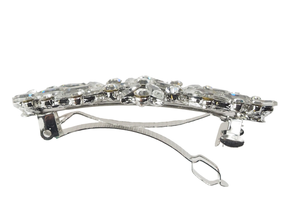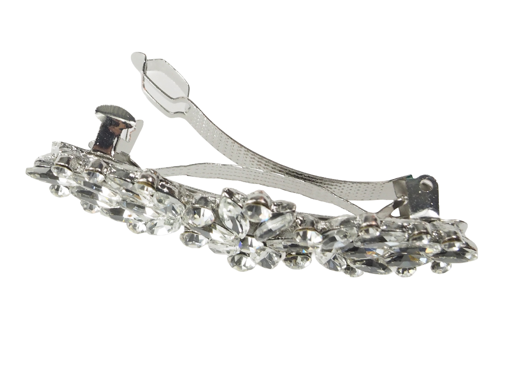 Bring dein Haar zum Strahlen mit der Haarspange Kanani Bright. Diese etwa 6 cm lange Spange ist über und über mit klaren, hochkarätig wirkenden Kristallen besetzt, die bei jeder deiner Bewegungen das Licht einfangen. Ob für eine Hochzeit, ein festliches Dinner oder um deinem Alltagslook ein luxuriöses Upgrade zu verleihen – mit diesem Accessoire setzt du glanzvolle Akzente.