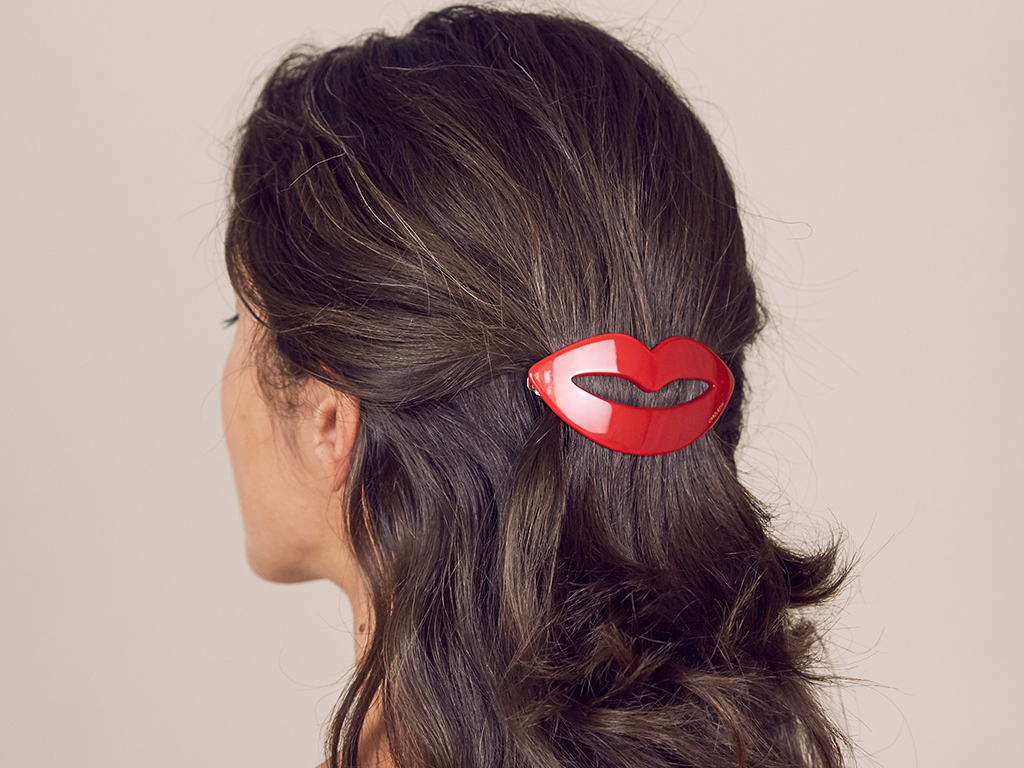 Hier seht ihr eine Haarspange, die ihres gleichen sucht: Sie ist handgearbeitet, mit Made-in-France-Patent kommt sie optisch als großes Highlight in Form eines perfekten Kussmunds daher. Und das Ganze in klassisch glänzendem Rot aus der Farbwelt der Chanel-Lippenstifte! Die Haarspange ist etwa 9 cm breit, 4,5 cm hoch und natürlich ein echter Hingucker! Damit sind super viele schöne Hairstyles möglich und nebenbei erhöht ihr euren Stylefaktor zu jedem Outfit.