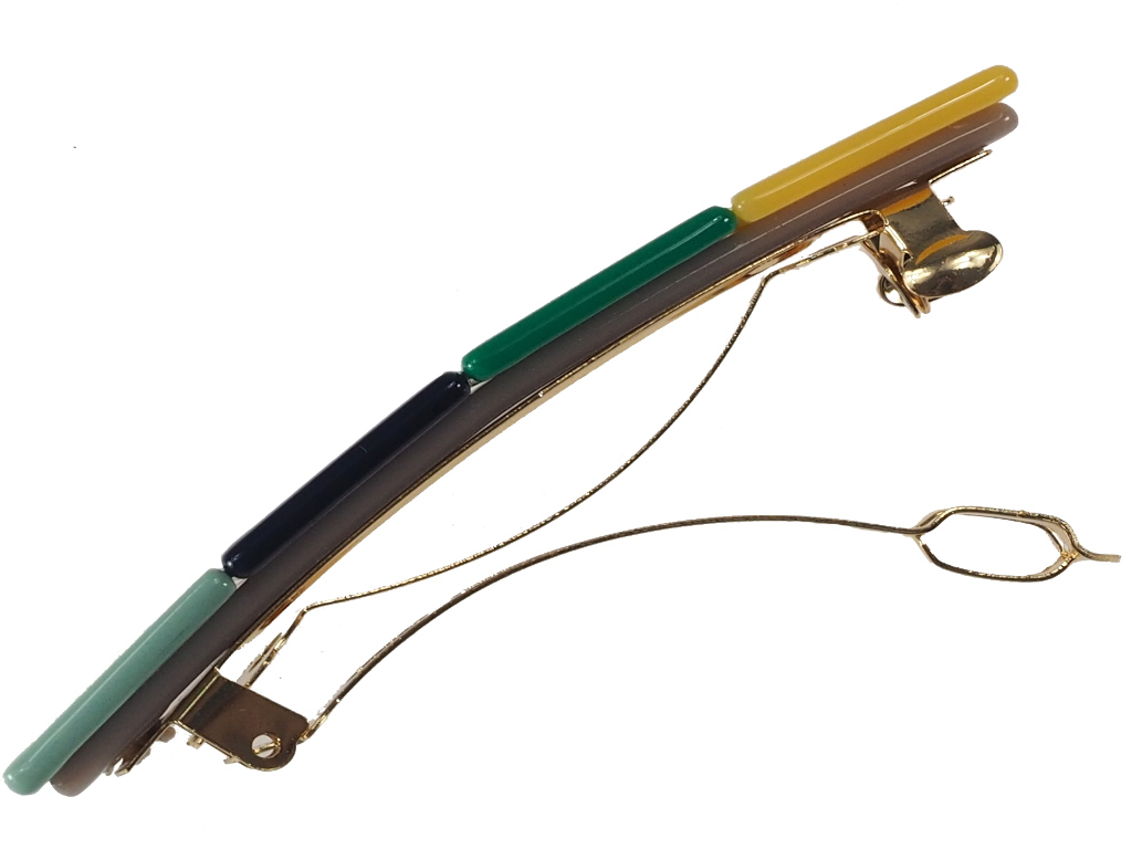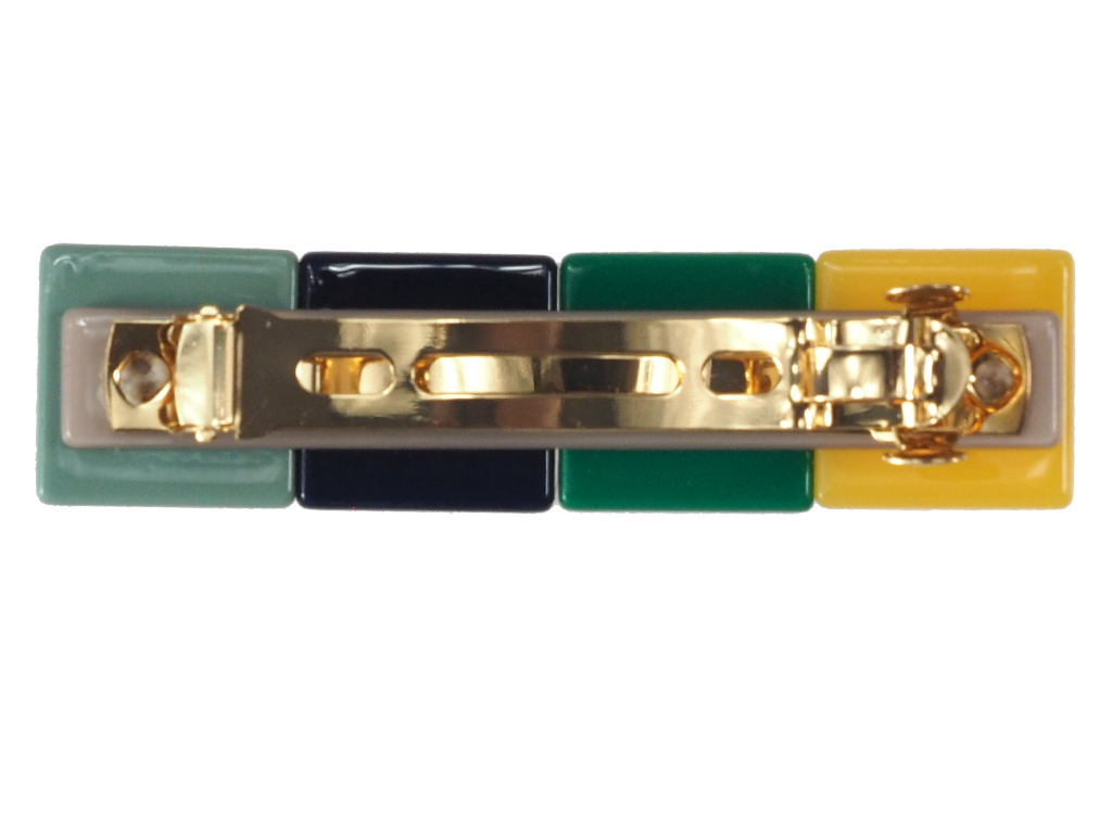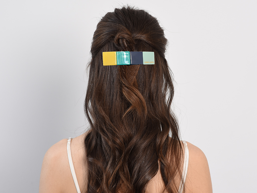 Haarspange Marni mit den coolen, modernen Blockmuster sieht nicht nur genial aus, sie ist seit jeher ein probates Mittel, um die Haare zu einem Pferdeschwanz oder auch nur das Deckhaar am Hinterkopf zusammen zu nehmen. Anders als bei einem Haargummi werden die Haare durch den Patent Clip fester gehalten. Die Haarspange ist etwa 2,3 cm breit und 9 cm lang.Die wunderschöne Farbkombination macht diese Haarspange zu einem echten Hingucker. Haarspange Marni ist sehr hochwertig verarbeitet und das besondere Design macht sie zu einem absoluten It-Piece!