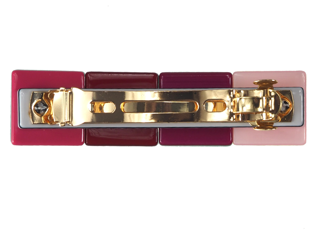 Haarspange Marni mit den coolen, modernen Blockmuster sieht nicht nur genial aus, sie ist seit jeher ein probates Mittel, um die Haare zu einem Pferdeschwanz oder auch nur das Deckhaar am Hinterkopf zusammen zu nehmen. Anders als bei einem Haargummi werden die Haare durch den Patent Clip fester gehalten. Die Haarspange ist etwa 2,3 cm breit und 9 cm lang.Die wunderschöne Farbkombination macht diese Haarspange zu einem echten Hingucker. Haarspange Marni ist sehr hochwertig verarbeitet und das besondere Design macht sie zu einem absoluten It-Piece!