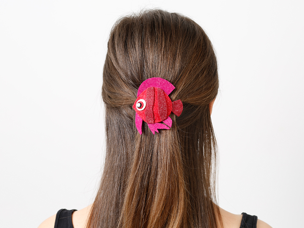Beim Anblick dieser süßen Haarspange schlägt jedes Mädchenherz höher – das der Mütter sicher ebenso. Der Fisch sitzt auf einer etwa 6 cm langen Haarspange in Barretteform.